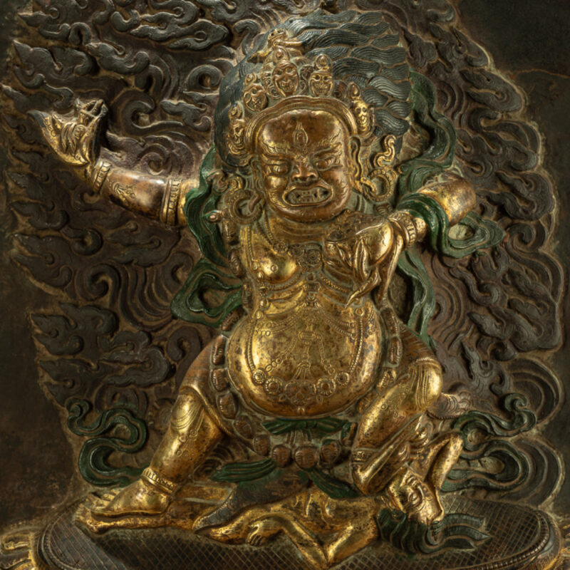 Wrathful Guardian – 19th Century Gilt Copper Vajrapani Repoussé Wall Thangka