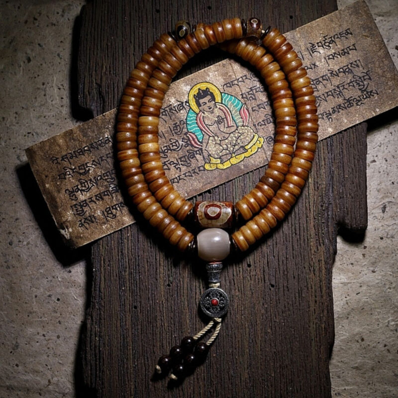 $168.00 – $188.00Price range: $168.00 through $188.00Vitality Yak Bone 108 Mala Beads Necklace