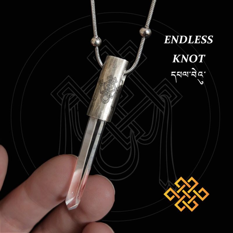 Eight Blessings from Tibet Spiritual Amulet Pendant in Sterling Silver & Crystal Quartz