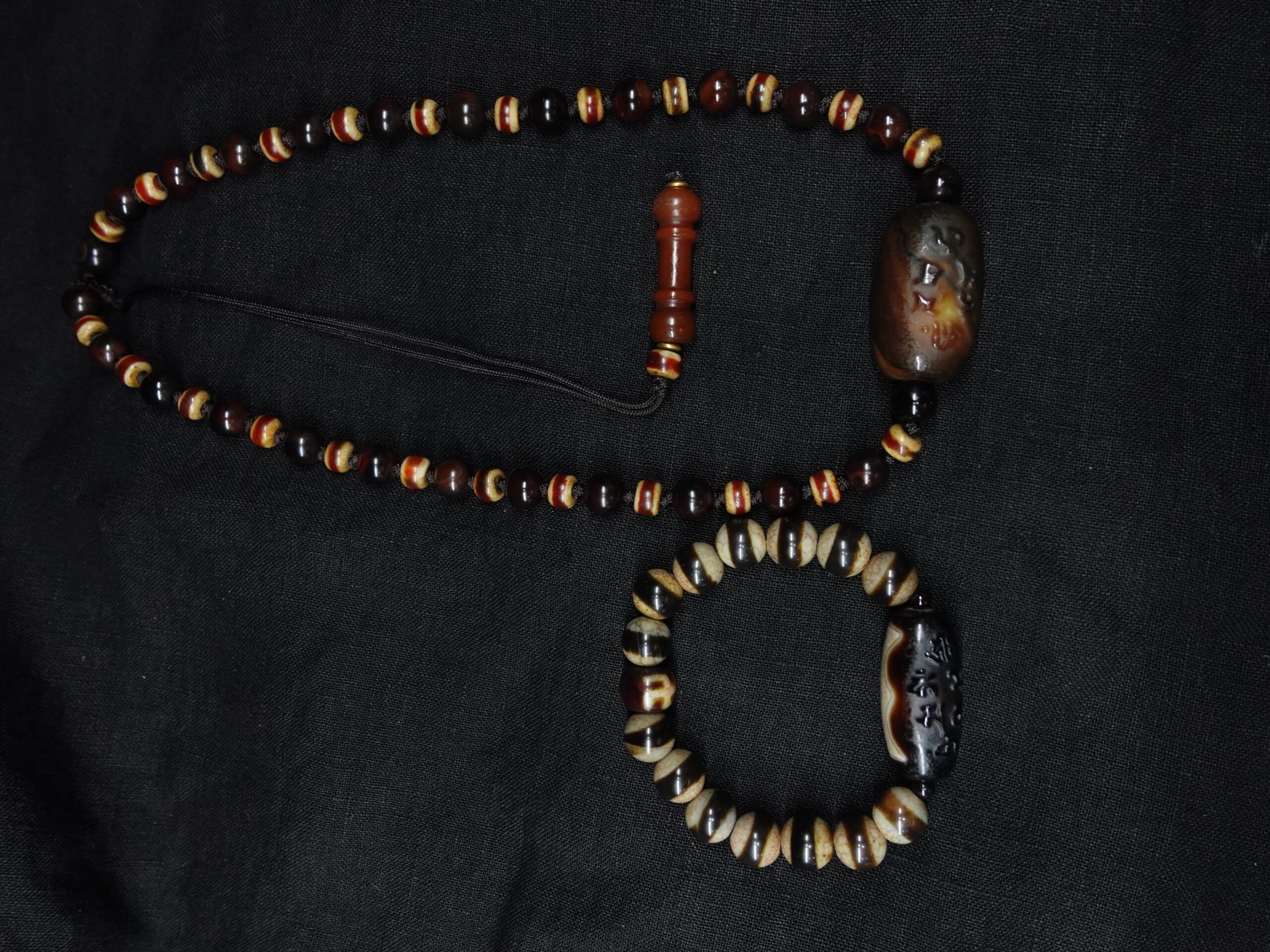 【Unique Item】 Old Agate Six-Syllable Mantra Bodhi Dzi Bead Necklace