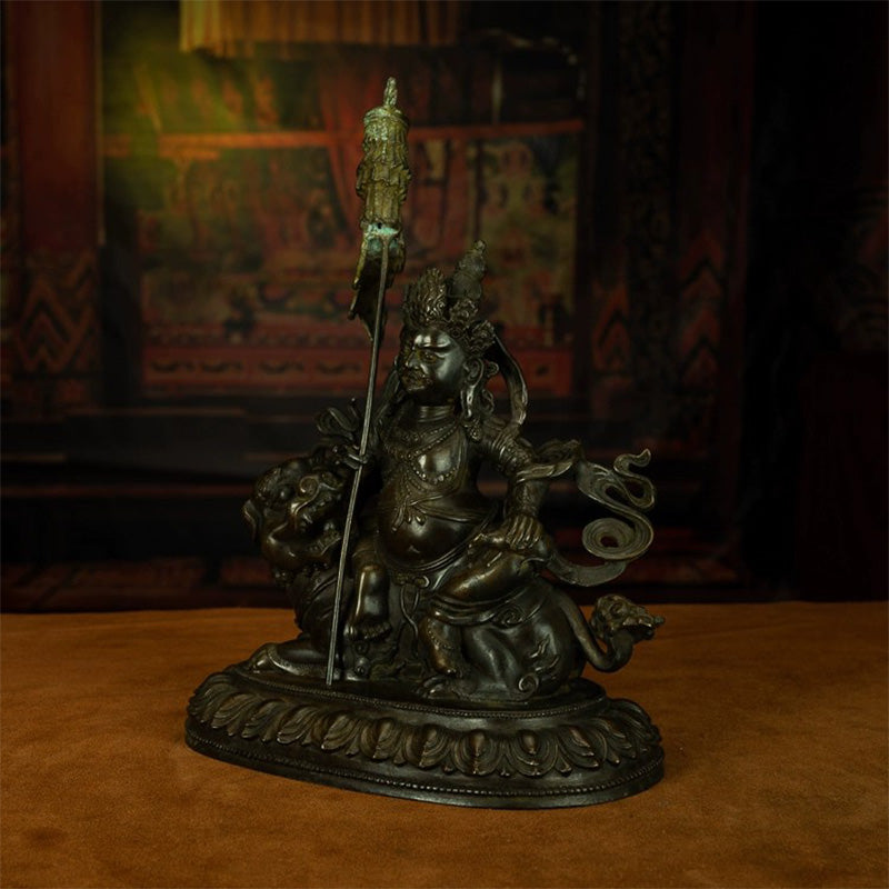 18th Century Vaiśravaṇa Tibetan Antique Buddha Statue Lima Copper From Dzogchen Monastery