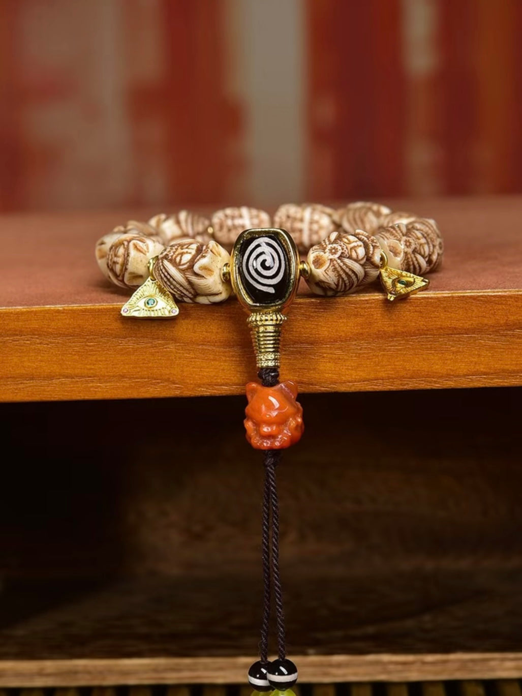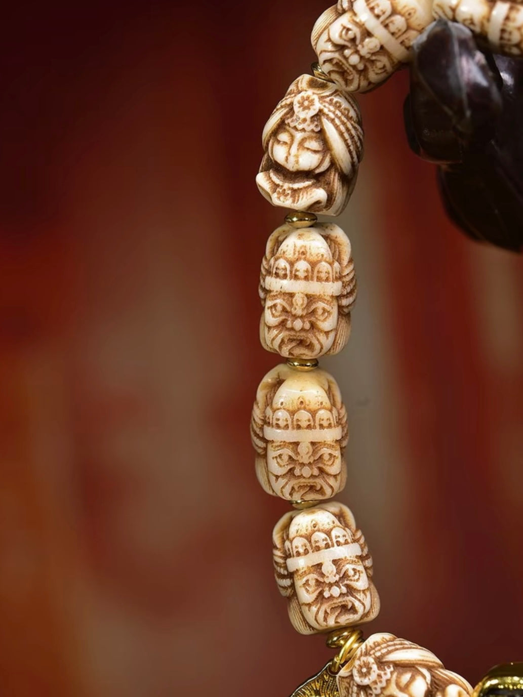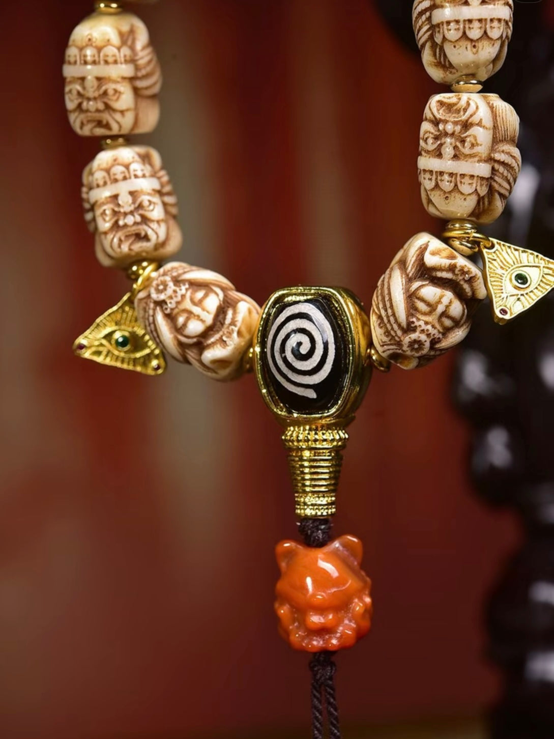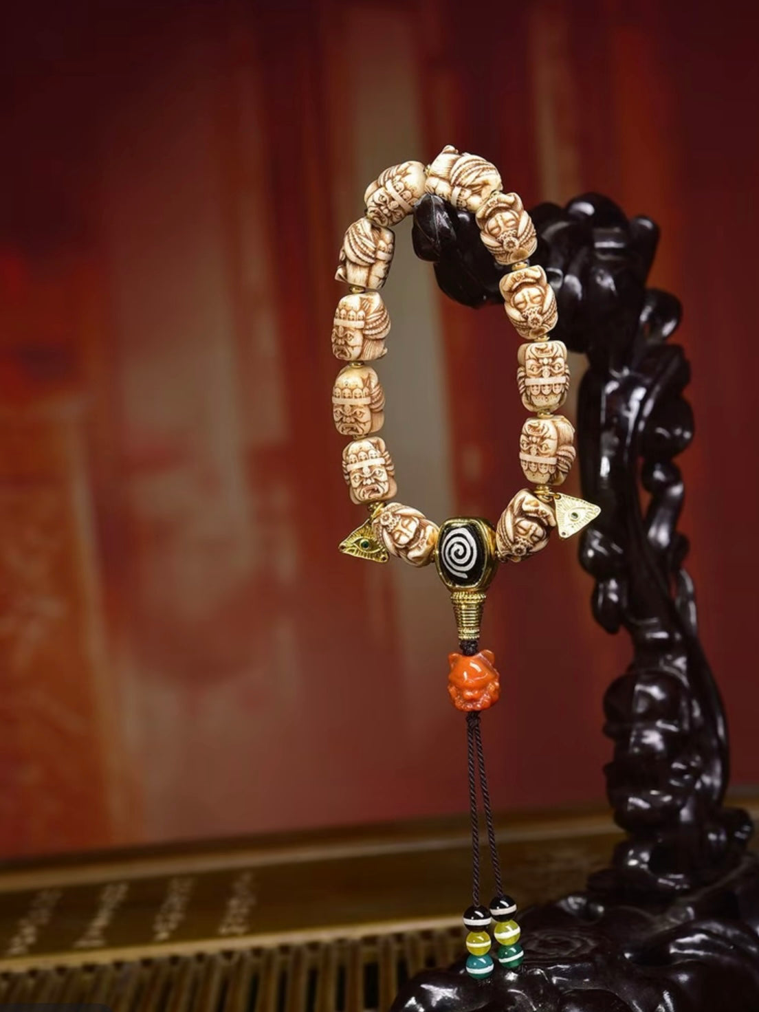 Ancestral Legacy Mala: Zakirum Guardian with Carved Deer Bone – Handheld Spiritual Artisan Piece