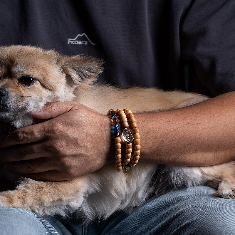Bodhi Seed 108 Mala Necklace – Nine-Palace Bagua & Five-Color Crystal Design