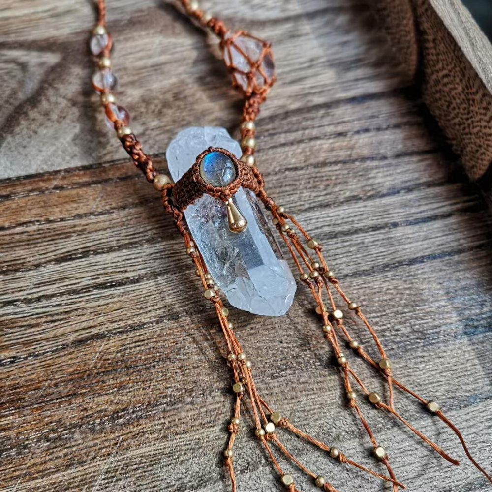 Material: Clear Quartz. Wax Rope. Copper
