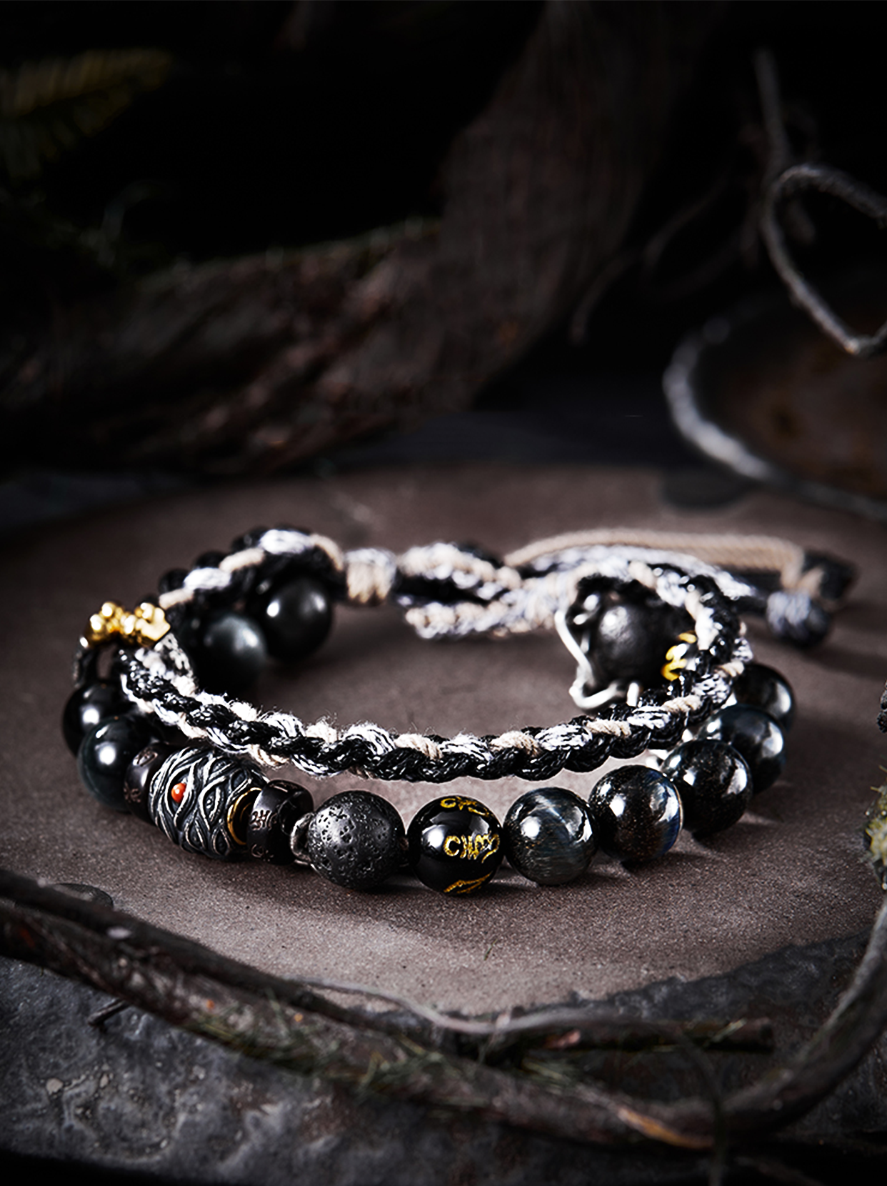 Himalayan Buddhist Prayer Obsidian Bracelet
