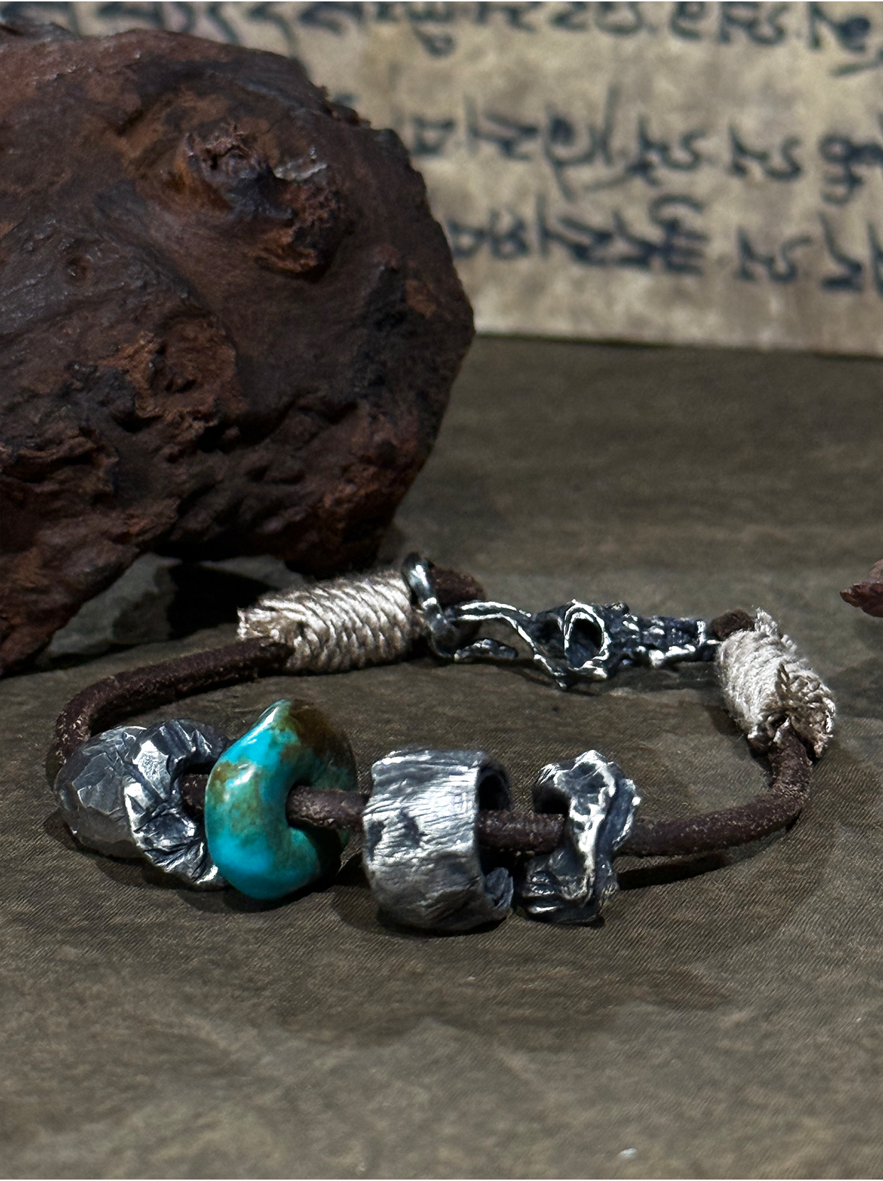 Turquoise and Sterling Silver Carved Bracelet