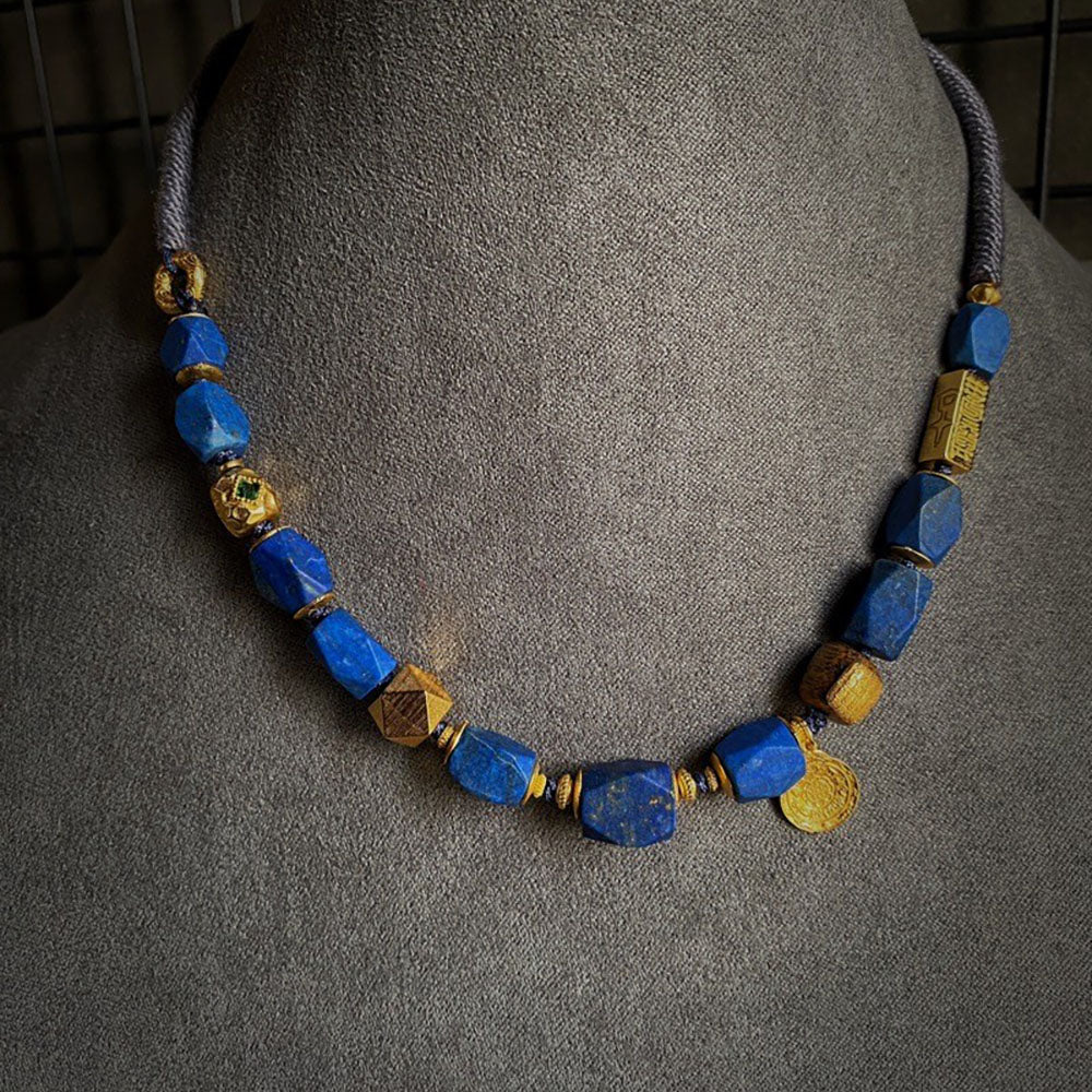 Whisper of Tranquil Healing Lapis Lazuli Gold Necklace